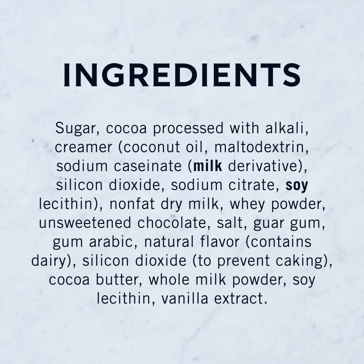 Ghirardelli Hot Cocoa With Chocolate Chips blends just the right amount of sugar, vanilla and high quality chocolate for a perfectly balanced hot cocoa experience. Stir up some instant decadence with this velvety-smooth Hot Cocoa and savor the chocolate intensity you expect from Ghirardelli. Ghirardelli makes life a bite better.