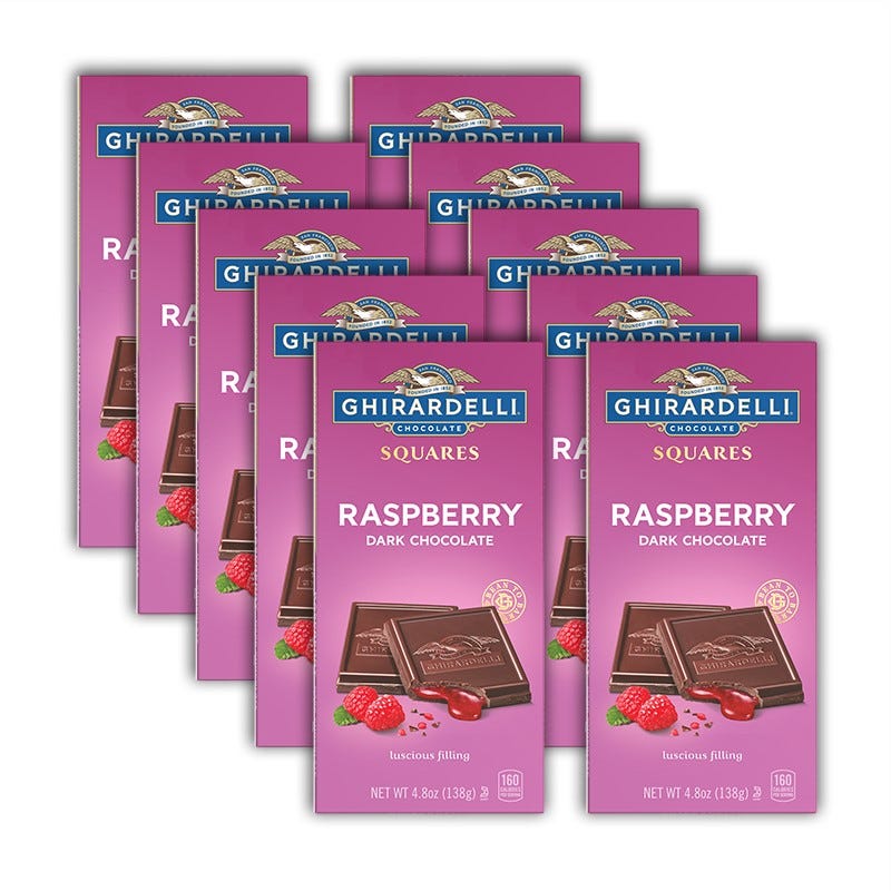 Give in to luscious indulgence with each bite of this GHIRARDELLI Dark Chocolate Bar with Raspberry Filling. You’ll receive ten (10) 4.8oz bars, each made with the perfect balance of sweet, tart raspberry and dark chocolate for a satisfying treat. Perfect for sharing or portioning, these raspberry dark chocolate bars are made with high-quality cocoa beans and sure to please for any occasion.
